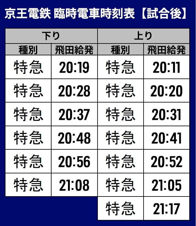 下り…飛田給発20:19~21:08の特急/計6本