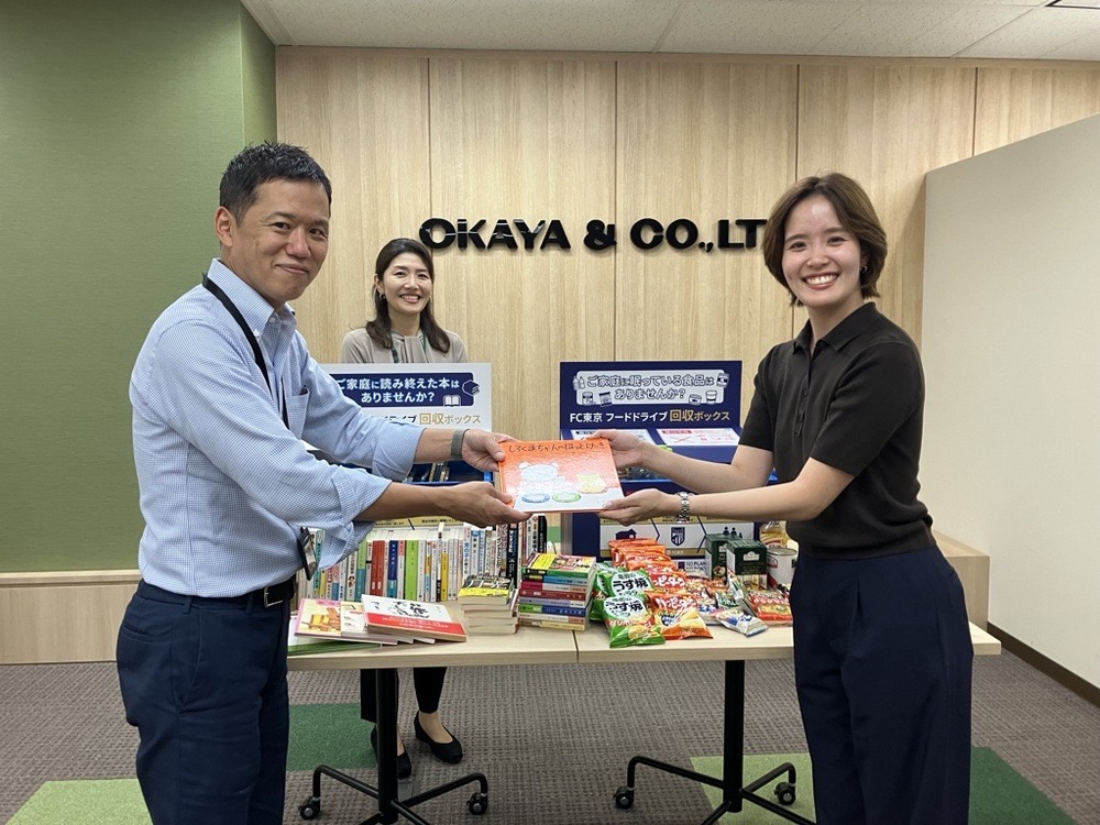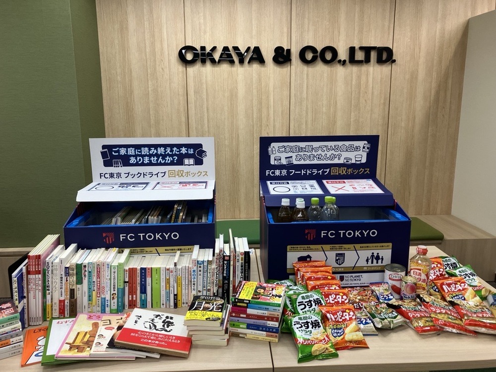 岡谷鋼機株式会社の東京本店に専用の回収BOXを設置し、従業員のみなさまにご協力いただき、ご家庭内の余った食品や読まなくなった本などの“ロス”を減らす目的として、フードドライブ・ブックドライブを実施いたしました。
