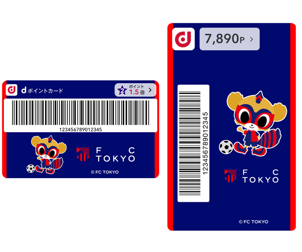 ※1 dポイントクラブアプリからモバイルdポイントカードの券面をFC東京のデザインにきせかえて、dポイントカードの提示、「d払い」でのお支払い、「dカード」でのお支払いのうちいずれかの方法のお買物が対象です。