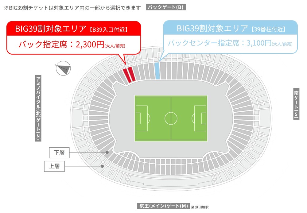 ※バック指定席およびバックセンター指定席はFC東京応援席です