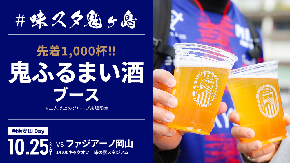 10月25日(土) 2025明治安田J1リーグ 第35節 vsファジアーノ岡山(14:00キックオフ/味の素スタジアム)に向けて、『#味スタ鬼ヶ島』キャンペーンを実施いたします。