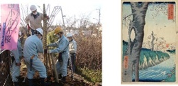 都立農業高校の生徒が育てた小金井桜を特別にお披露目します。江戸時代の浮世絵や明治時代の写真等のパネル展示から小金井桜を紹介します。