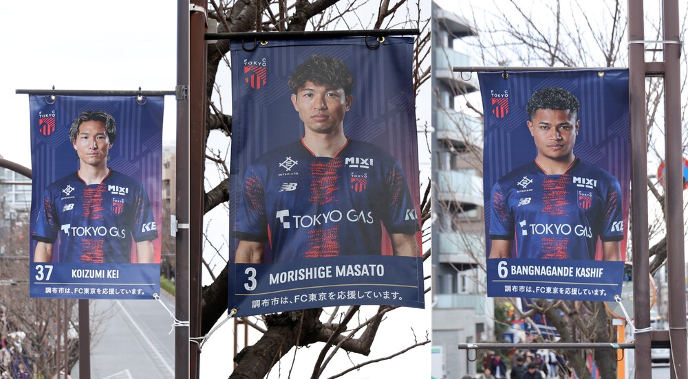飛田給駅から味の素スタジアムまでの通りにFC東京のホームゲーム開催時掲出されている各選手の街路灯フラッグに直筆サインを入れて、オークションを実施いたします。