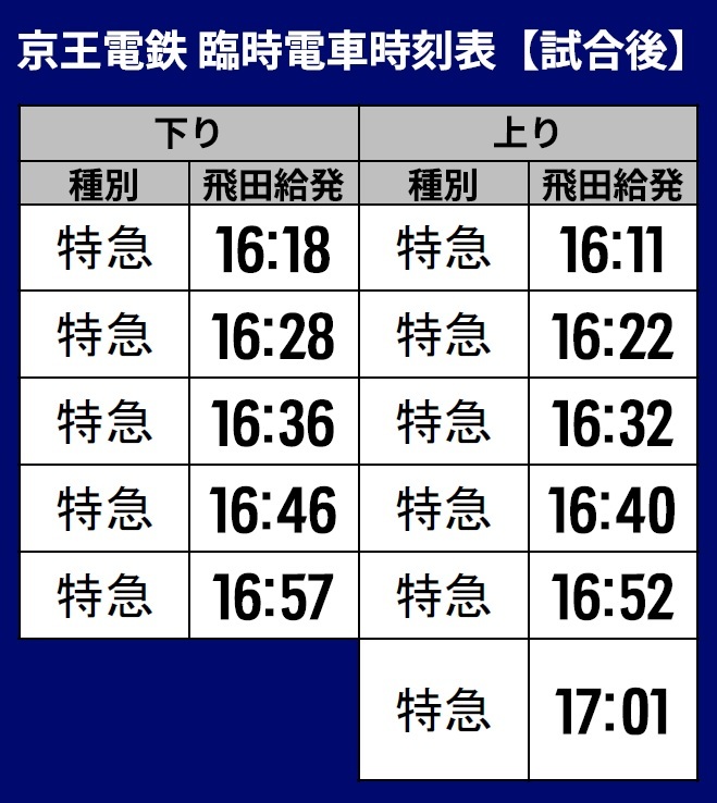 上り…飛田給発16:11~17:01の特急/計6本