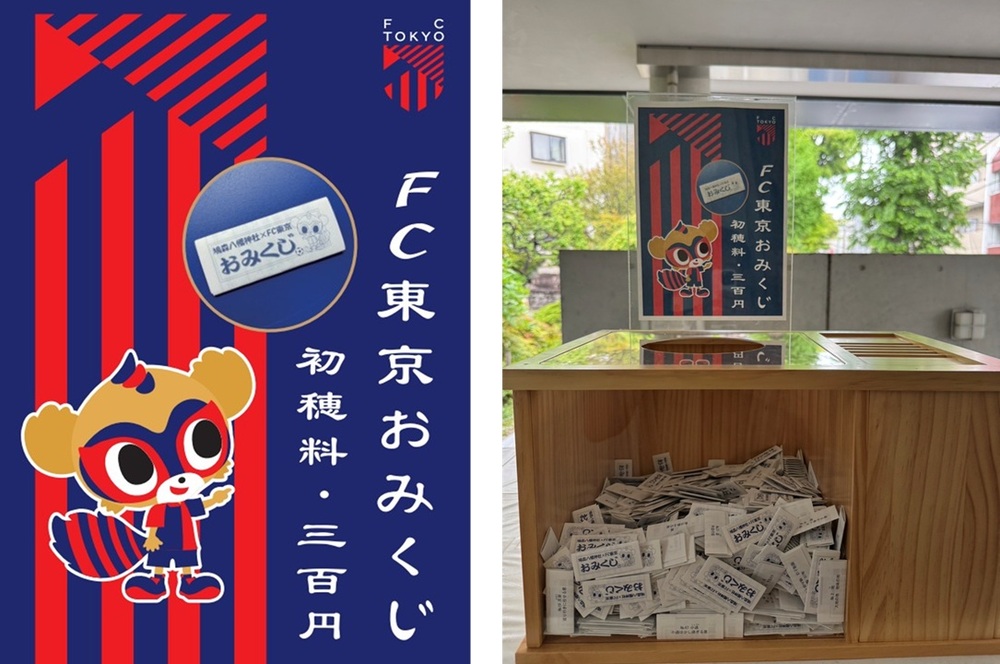 鳩森八幡神社では今年4月25日(金)から開始した『FC東京おみくじ』を継続して頒布しており、今回も勝利祈願の絵馬かけ所を設置致します。
