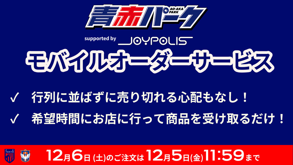 【12月】青赤パークsupported by JOYPOLIS モバイルオーダーサービスのお知らせ