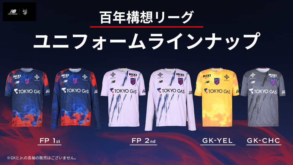 明治安田J1百年構想リーグの新ユニフォームは、1st KITにはクラブスローガンである『東京が熱狂』を表した“炎”をモチーフとしたデザインを採用しました。特別な大会だからこそ従来のストライプデザインの枠を超えて“情熱”を表現しています。また、エンブレムをセンターに配置する斬新さも新たなポイントとなっています。