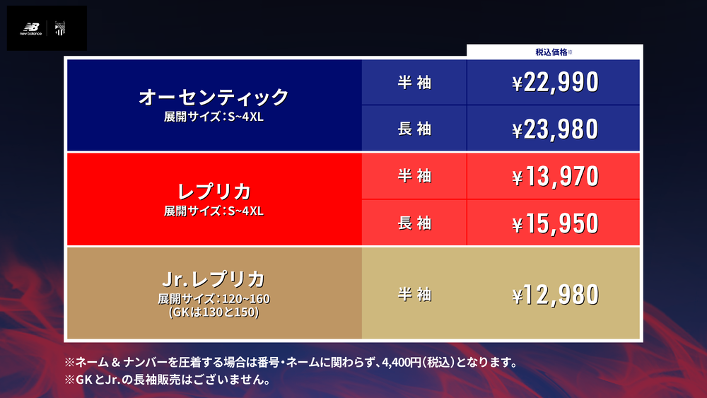 オフィシャルオンラインショップ限定すぐにお届けユニフォームのネーム&ナンバー無しについて、S~4XLサイズの展開を開始しました。Jr.サイズの展開はございません。在庫状況は変動しますので、ご注意ください。