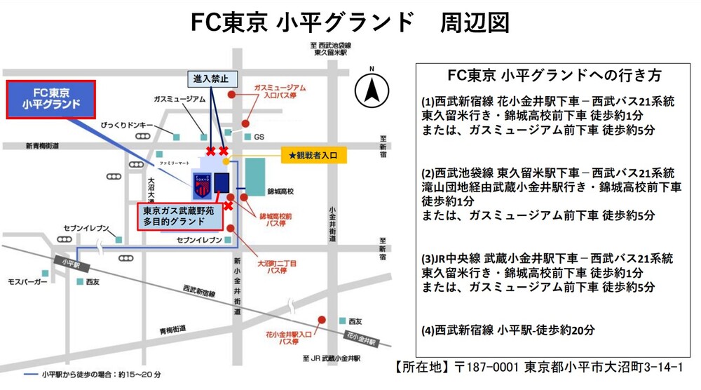 JR中央線『武蔵小金井駅』下車、西武バス(21系統 東久留米行)『錦城高校前』下車、徒歩1分