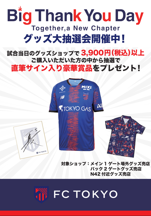 グッズ売店で、3,900円以上ご購入いただいた方に抽選で全選手サイン入りユニフォームや色紙が当たるキャンペーンを実施します。