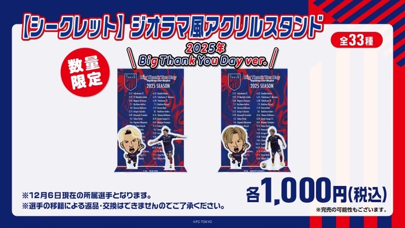 12月6日(土)2025明治安田J1リーグ第38節 vsアルビレックス新潟 (14:00キックオフ/味の素スタジアム)にて、グッズ売店・ガチャガチャコーナーを開催いたします。