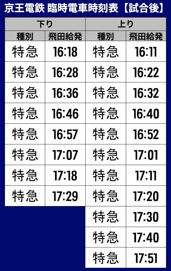 上り…飛田給発16:11~17:51の特急/計11本