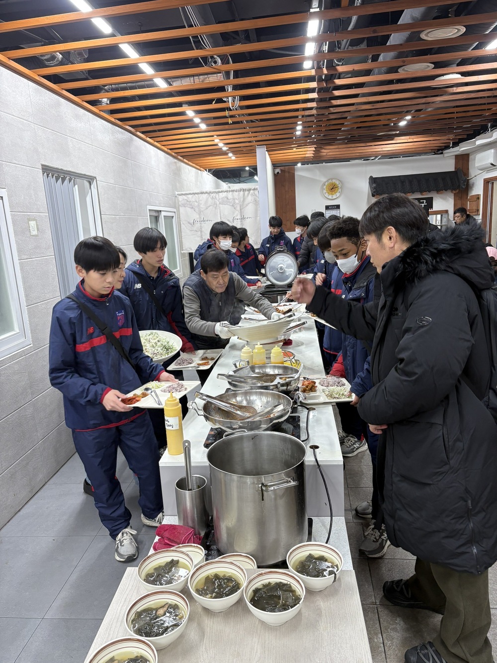 冷え切った体を温めるため、試合後はソルロンタンとキムチを!