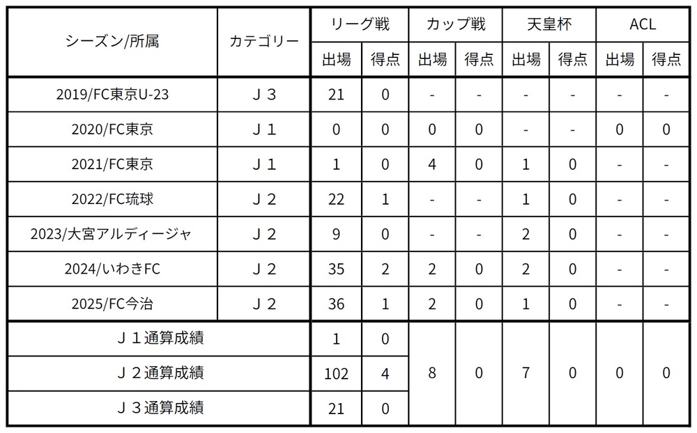 4シーズン、FC琉球、RB大宮アルディージャ、いわきFC、FC今治のために全力で戦ってきました。結果を出せないシーズンもありましたが、すべて悔いのないシーズンだったと思います。それぞれのチームで支えてくれた方々の想いを乗せて、必ずFC東京でクラブの目標であり自分の目標でもあるJ1リーグ優勝を達成したいと思います。