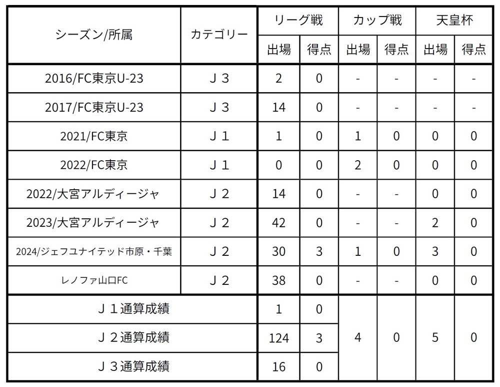 ※2016、2017シーズンはFC東京 第2種登録選手としてプレー