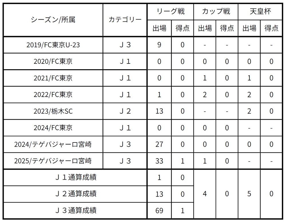 ※2019、2020、2021シーズンはFC東京 第2種登録選手としてプレー