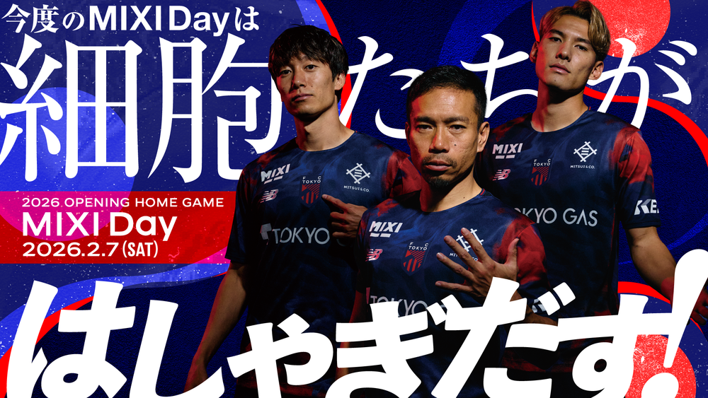 2月7日(土) 明治安田J1百年構想リーグ第1節 vs 鹿島アントラーズ(13:30キックオフ/味の素スタジアム)において、オフィシャルパートナーである『株式会社MIXI』のご協賛をいただき、『MIXI Day』を開催いたします。