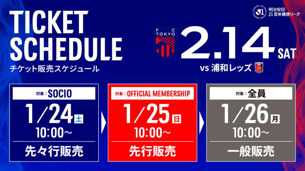 2月14日(土) 明治安田J1百年構想リーグ 第2節 vs 浦和レッズ(15:00キックオフ/味の素スタジアム)のチケット販売に関してお知らせいたします。