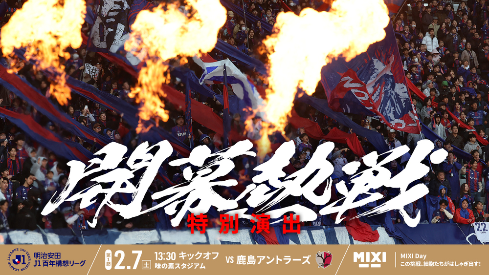 2月7日(土) 明治安田J1百年構想リーグ 第1節 vs鹿島アントラーズ (13:30キックオフ/味の素スタジアム)にて、フィールドエリアからの炎を用いた開幕特別演出を実施いたします。