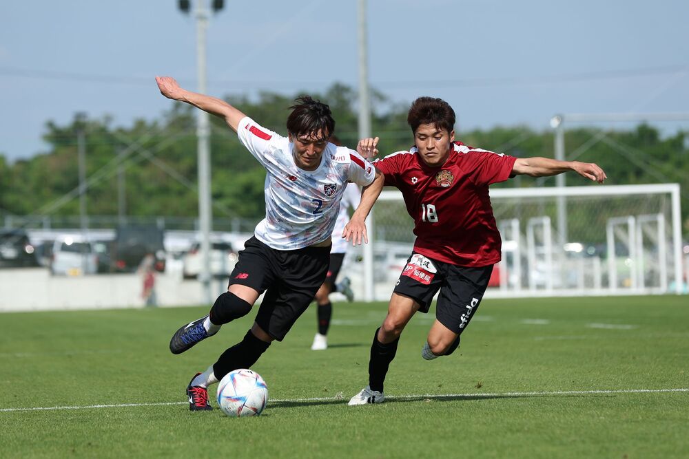 A, no ano passado, expandíamos para o lado oposto e conseguíamos circular a bola em formato de U, mas faltava agressividade na parte final, o que causava estagnação. Ouvi do jogador Nakagawa que, em vez de alguém fixar e ocupar o espaço, é importante que, dentro da movimentação conjunta, sempre haja alguém naquela posição, o que abre outro espaço, desvia a atenção do adversário e cria oportunidades. Isso me fez perceber algo. Na última temporada, não havia essa ideia nem garantia de que alguém estivesse sempre lá, então nesta temporada, enquanto atuo ou como passador para a finalização, faço ambos os papéis. Como não temos um padrão definido, busco qualidade aumentando o número de corridas e passes para pegar o ritmo. Já estamos na fase de finalização, então hoje, ao jogar contra o Ryukyu, que tem um nível alto, obtivemos novas informações que queremos assimilar e aplicar em nosso time.