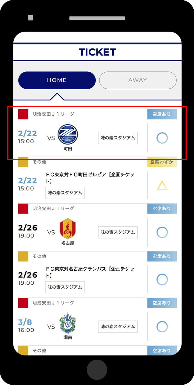 Acesse o Ticket FC Tokyo (J League Ticket) e selecione a partida que deseja assistir.