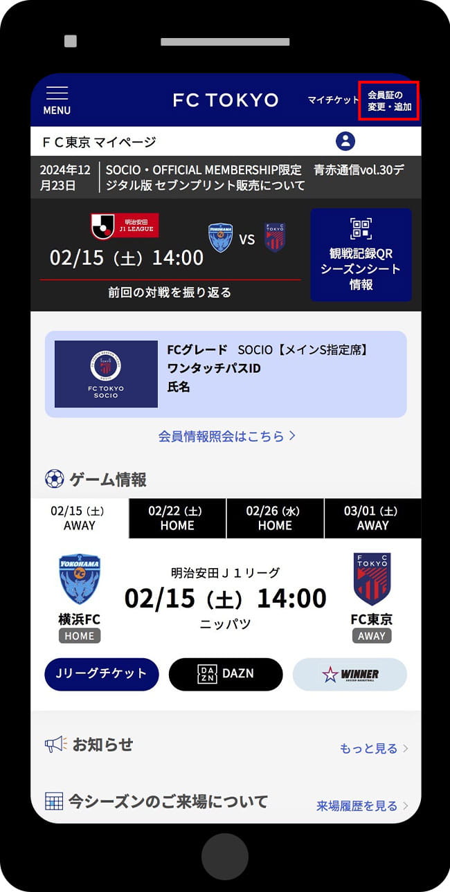 - Para usar este serviço, é necessário vincular o ID da J-League ao ID One Touch Pass (número SOCIO).