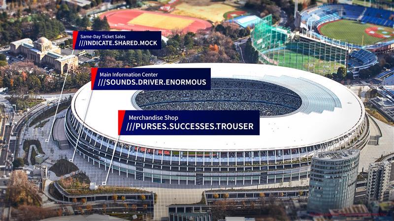 Cada quadrado de 3 metros recebeu uma combinação única de três palavras: um endereço what3words. Adicionamos aqui alguns locais populares para o Estádio Ajinomoto e o Estádio Nacional: