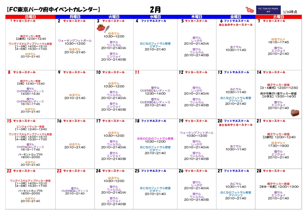 * Caso novos eventos sejam adicionados, informaremos no site oficial do FC Tokyo Park Fuchuou no X oficial (@fctparkfuchu).