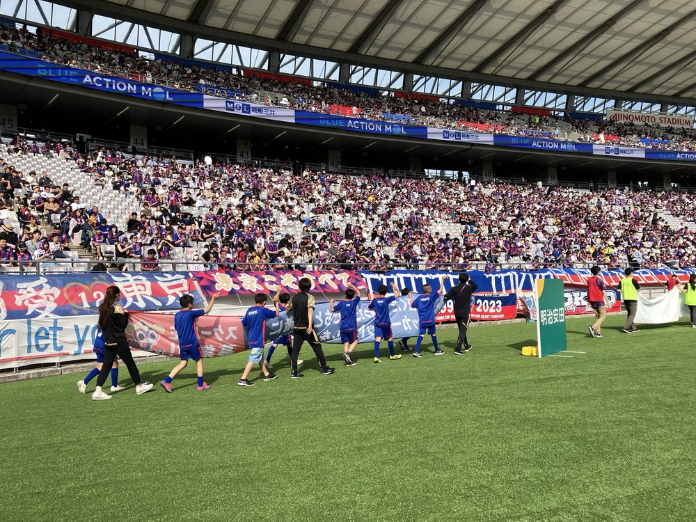 現在FC東京サッカー・フットサルスクールでは直轄校のスクール生を対象に、ホームゲーム開催時に不定期で「バナーウォークキッズ」イベントを開催しております♪