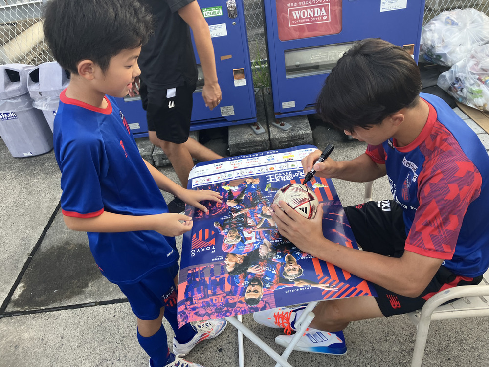 集合写真の後は、ひとりひとりに龍之介選手がサインを書きました!