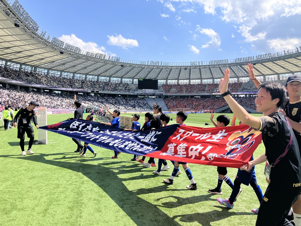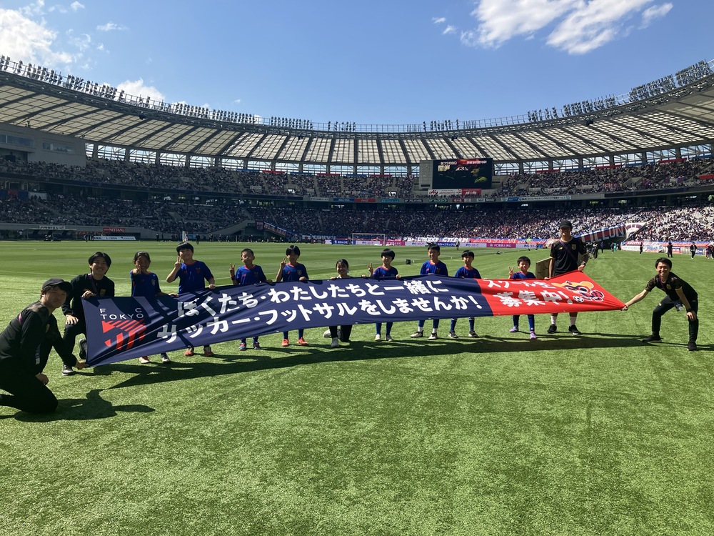 ハーフタイムにFC東京のスクールのバナーを持ってスクールのアピールをしました!
