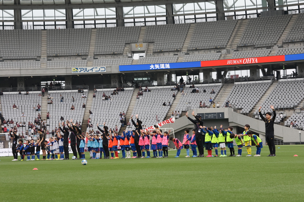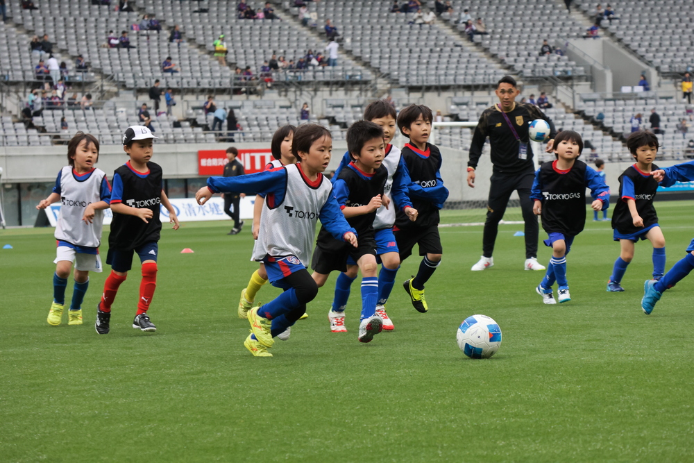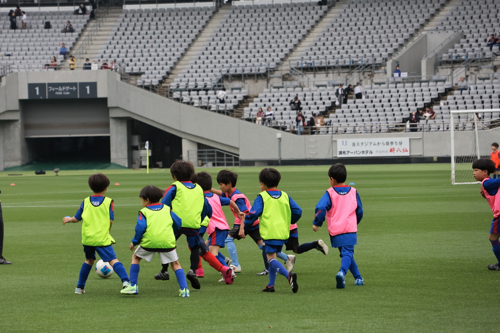 スクール生にとっては、トップチームの選手と同じ味の素スタジアムのピッチで