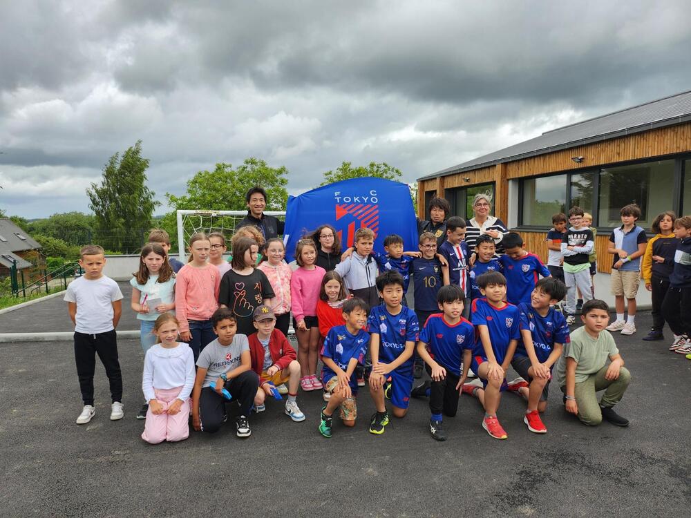 また、教室ではFC東京のスクール生も折り紙の鶴やカブトなどの折り方を、現地の子どもたちに教えてあげました。言葉が上手く通じない中でも、ジェスチャーなどで伝えるチャレンジをしていました。