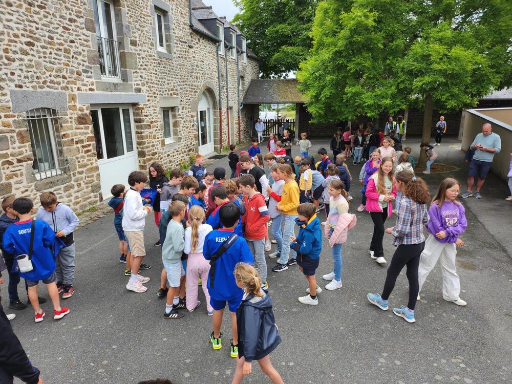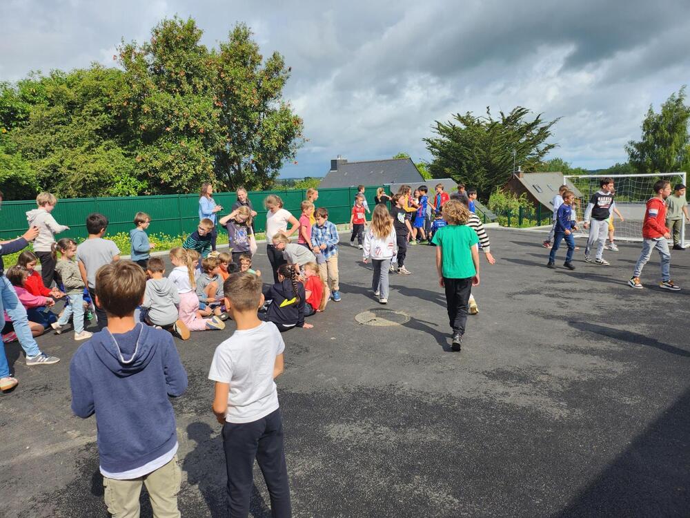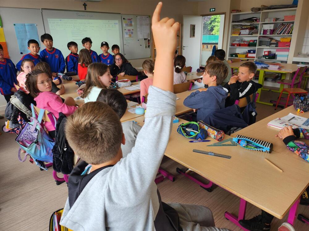 校庭で遊んだ後は、同じ10歳のクラスの子たちの教室に招かれ、自己紹介や用意してくれていた質問に答えました。