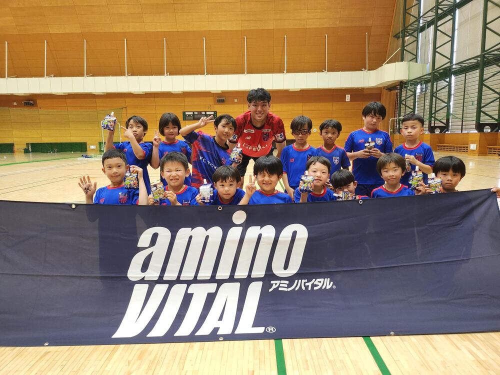 白井康介選手からもサインとガッツギアを渡し、最後に「時間は限られているので今を目一杯楽しんで一所懸命にサッカーを取り組んで欲しい!」と子どもたちに伝えていました!