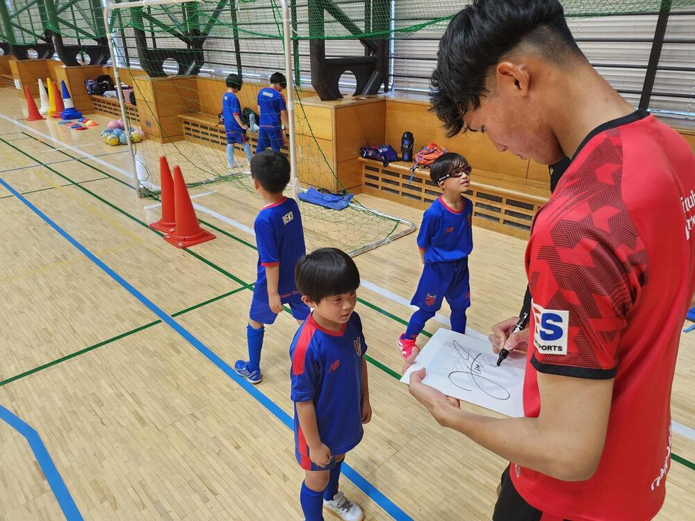 白井康介選手自ら動いてアドバイスをし、相手からのボールの取り方等のディフェンスの仕方も細かく丁寧に教えていました!