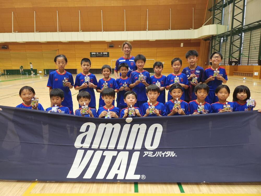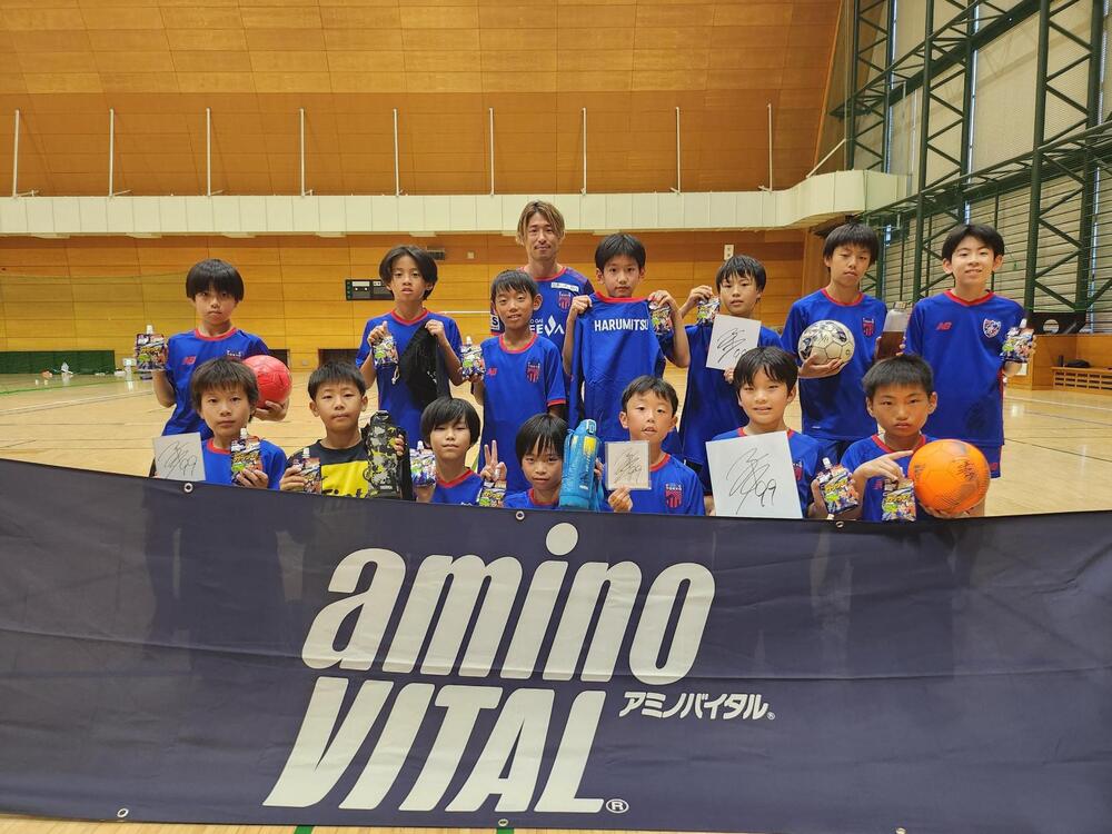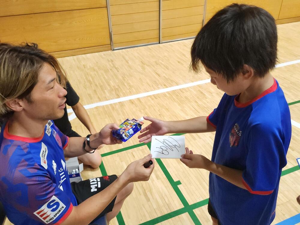 一人一人にサインを書いたり、味の素株式会社様よりご提供いただいたアミノバイタルドリンクゼリーのガッツギアを渡しました♪
