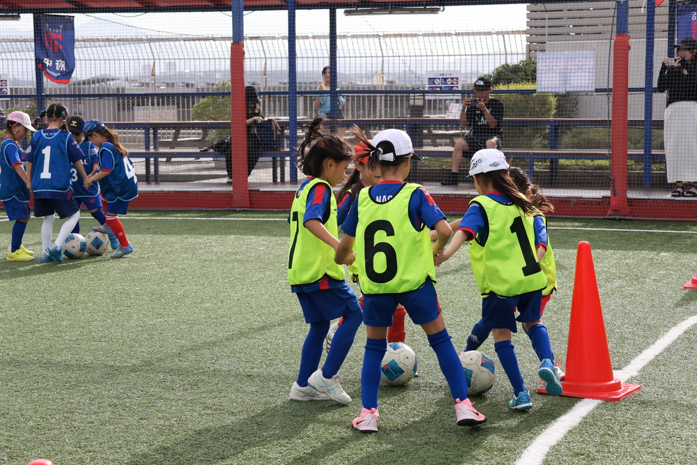 当日は、普段は男の子と一緒にサッカーをしていて、女の子だけでサッカーをするのが初めてというスクール生も多く、