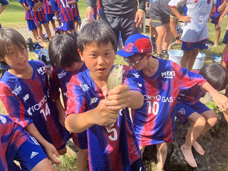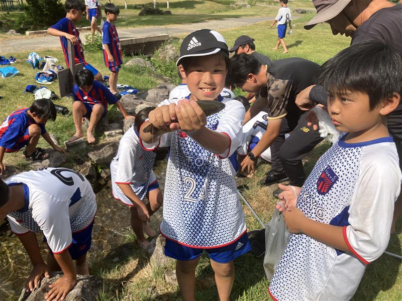 3日目の午後は自然体験の「魚のつかみ取り」を行いました。