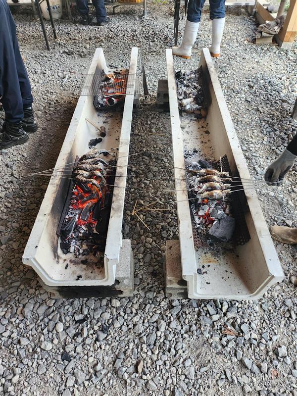 各々がつかんだ魚を、村の方がその場で焼いてくださいました。