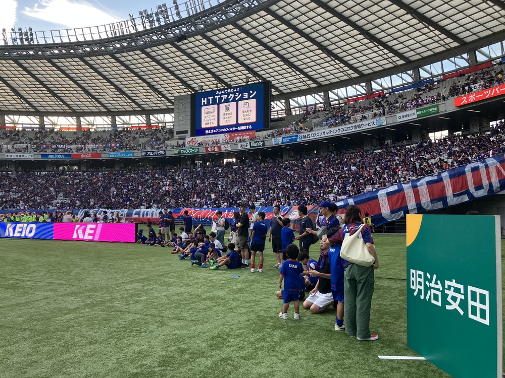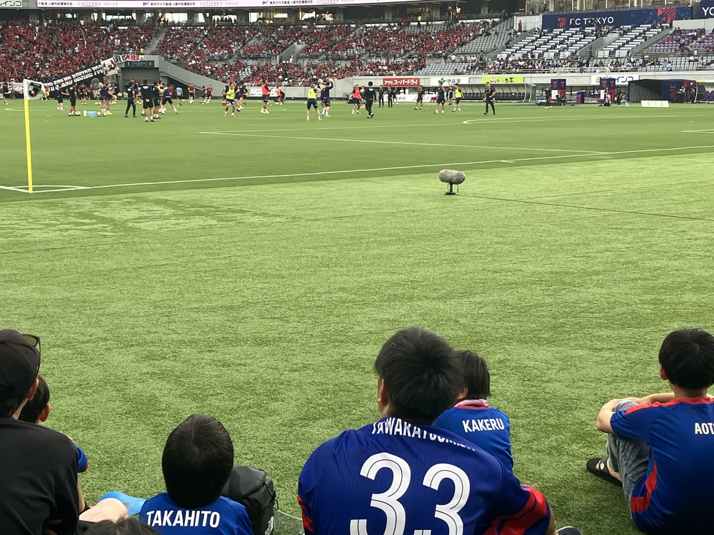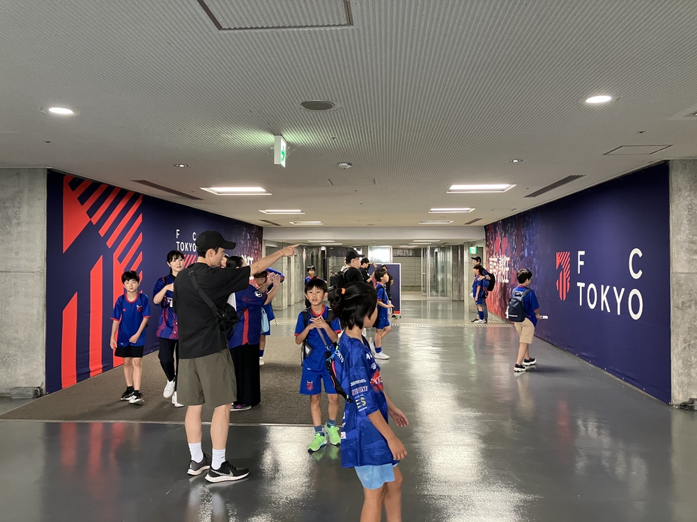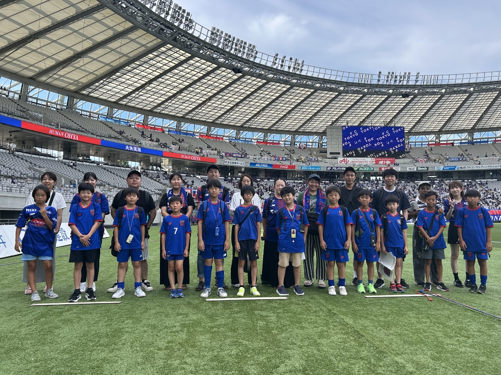 試合当日は、キックオフ前から夏の暑さが残る中での観戦となりましたが、参加してくれたスクール生たちは最後まで真剣な眼差しで選手のプレーや、味の素スタジアムの熱気を感じ取っていました。