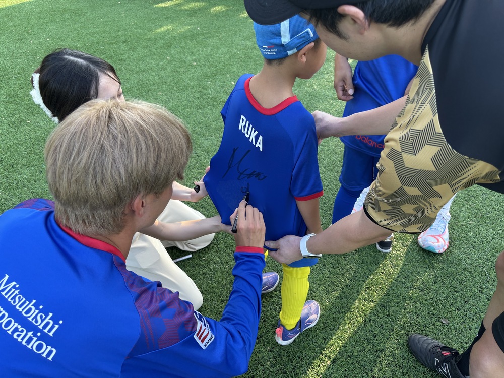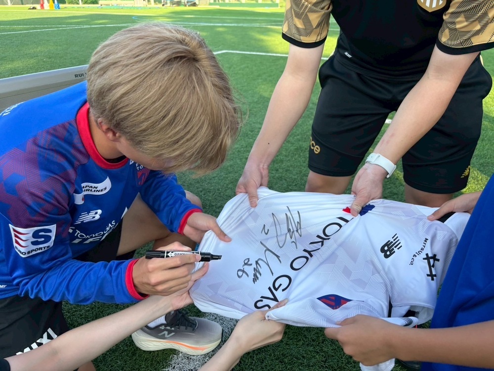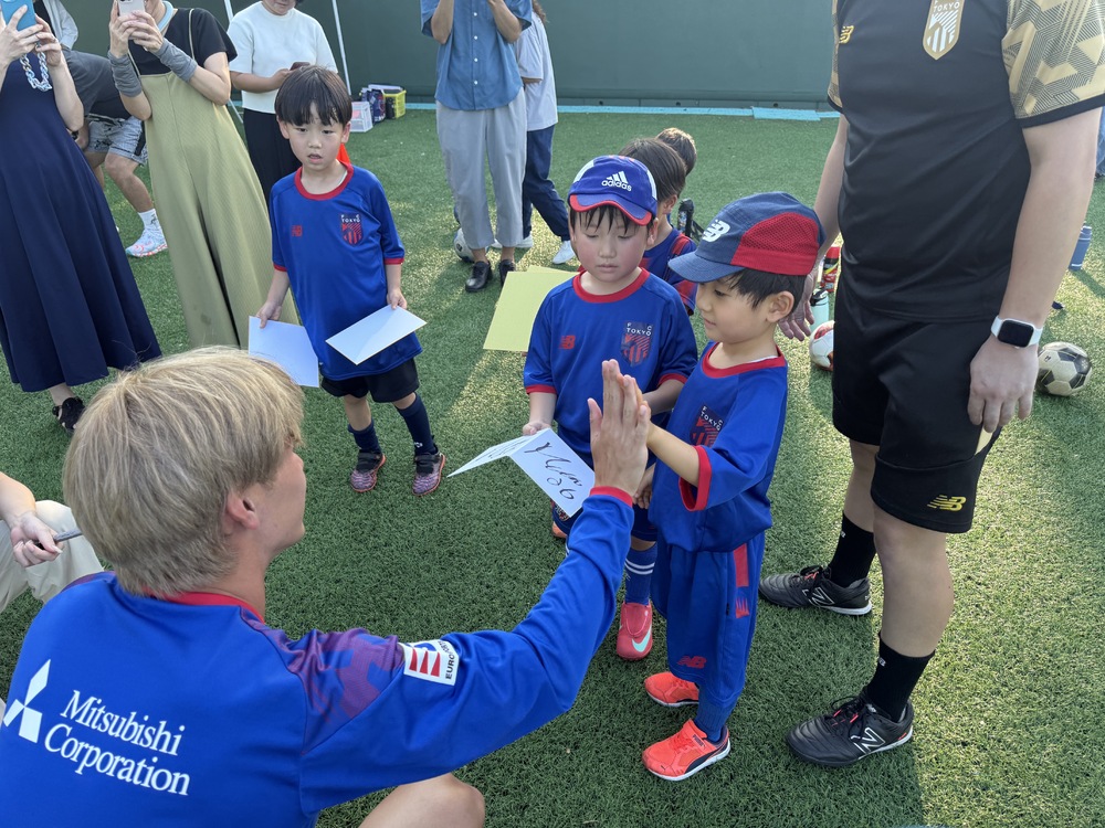 最後にはスクール生が持参したFC東京グッズに、長倉選手が一人ひとり丁寧にサインをしました。