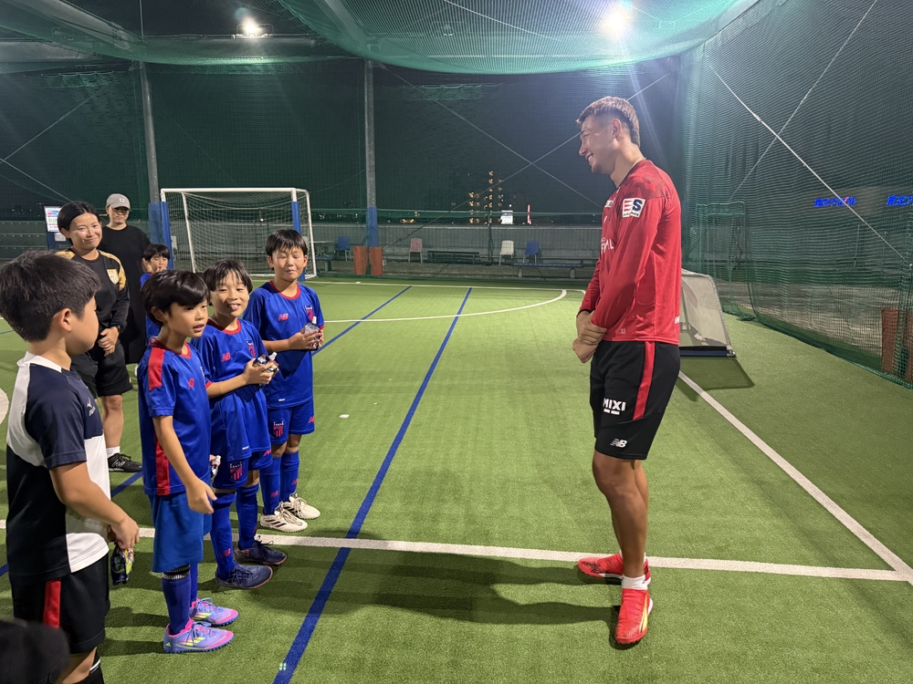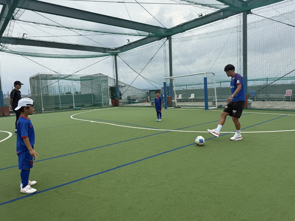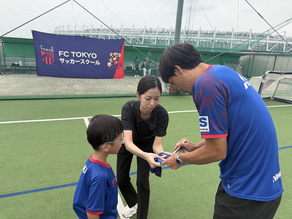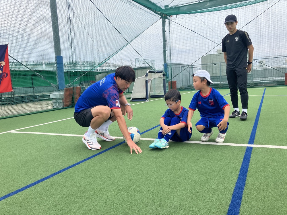 はじめは緊張気味のスクール生でしたが、東選手からスクール生に「サッカー選手になりたいの?」と声をかけることで、徐々に緊張もほぐれた様子でした。