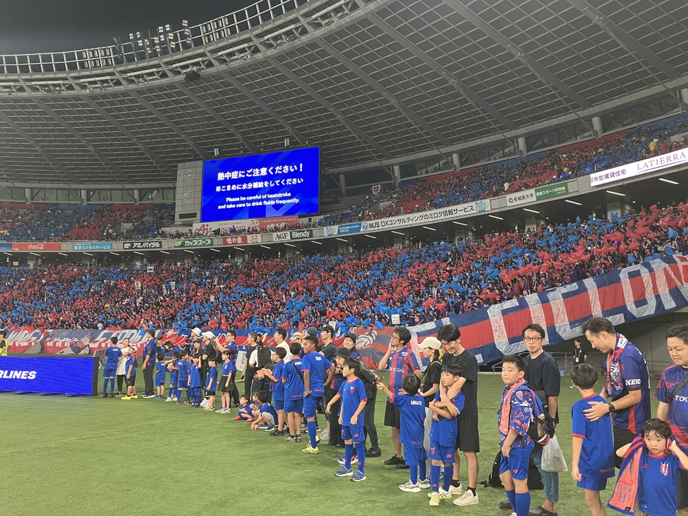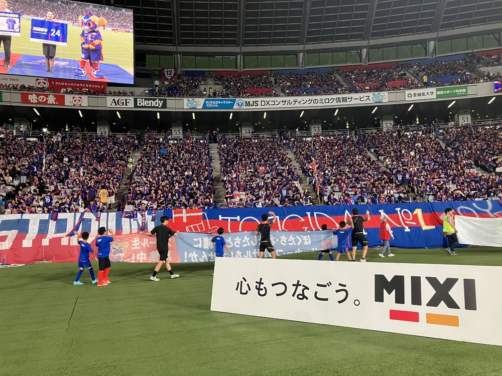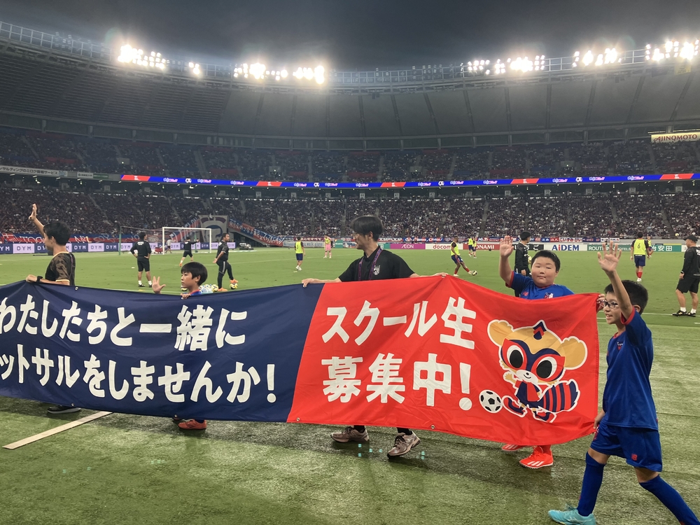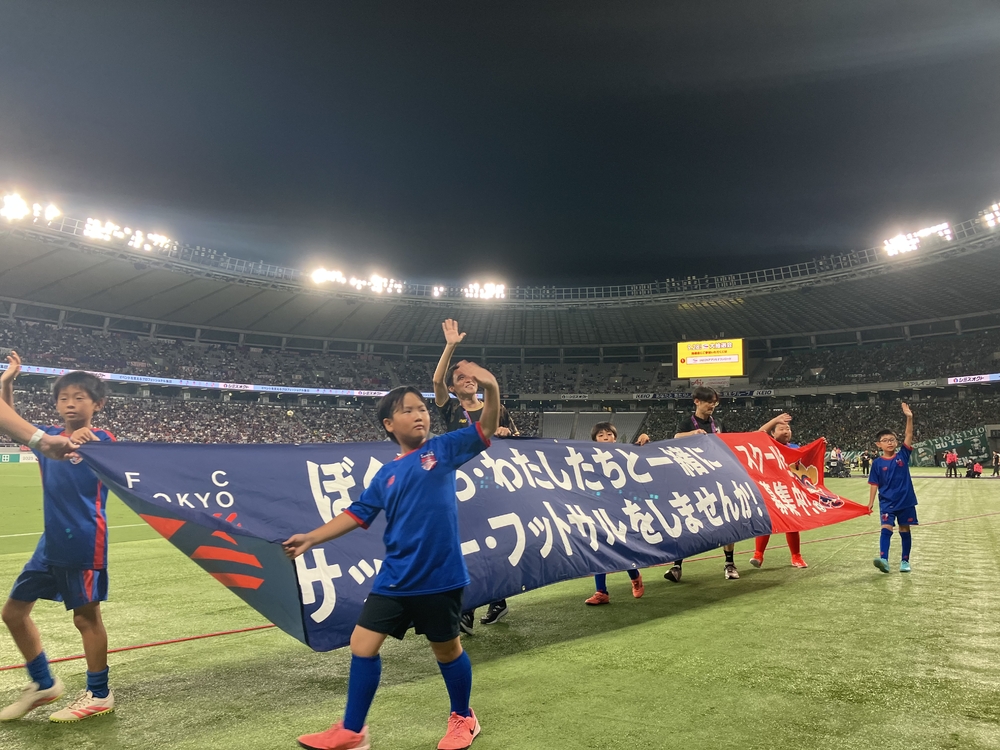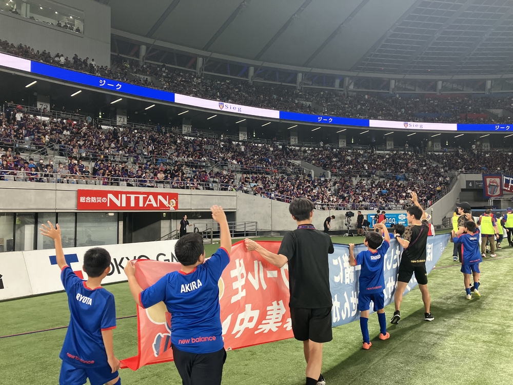 今回もFC東京サッカー・フットサルスクール生募集のバナーをもってピッチの周回を行いました!