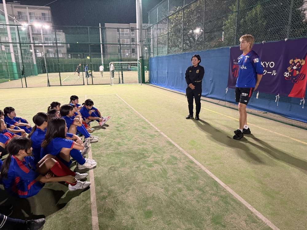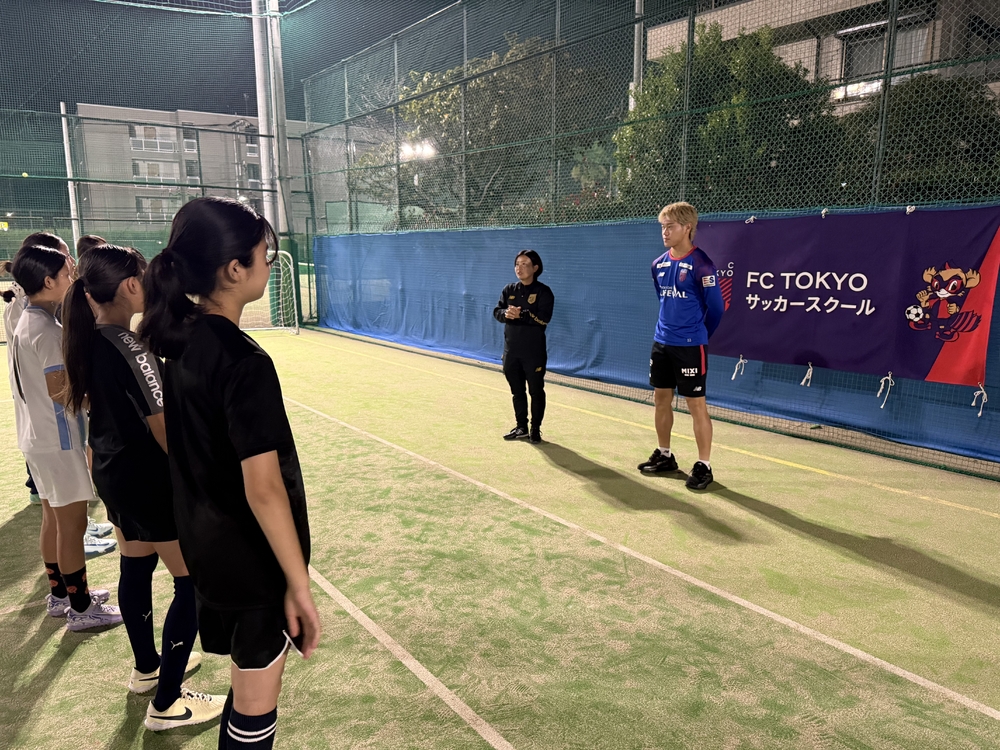 俵積田選手は「自分はドリブルが得意なので、コントロールしてから中にも縦にも運べる場所にボールをコントロールする事を意識しています。またそのために、周りを見る事もパスをもらう前は意識しています」と、アドバイスを送りました。