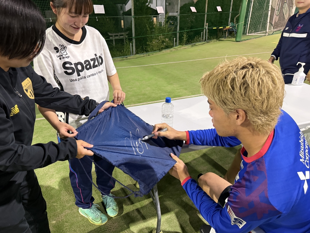質問タイムの後は、スクール生が持参したグッズに一人一人丁寧にサインを書きました。