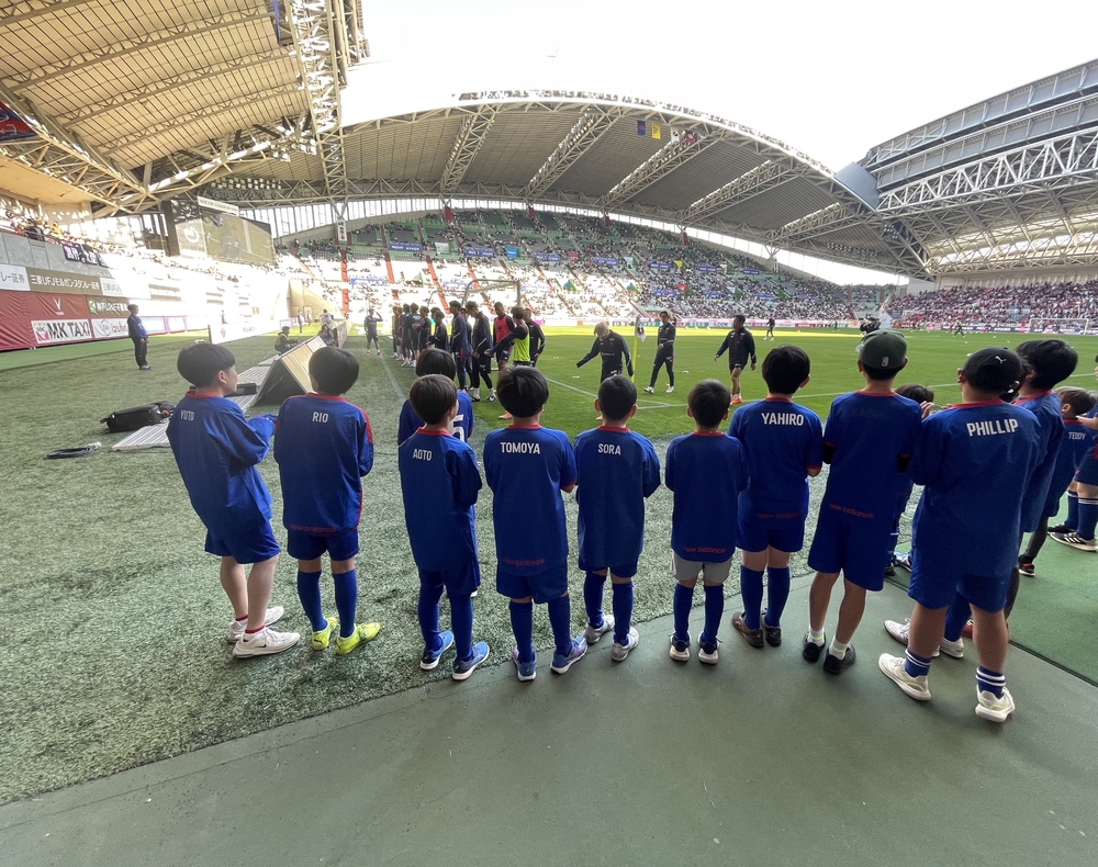 選手の挨拶を目の前で見ることができ、スクール生たちがチャントに合わせて応援すると、