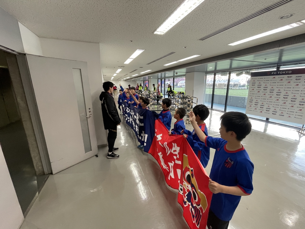 ハーフタイムには、スクールに通う3年生・6年生が、FC東京サッカー・フットサルスクールのバナーを持ってピッチを周回しました!