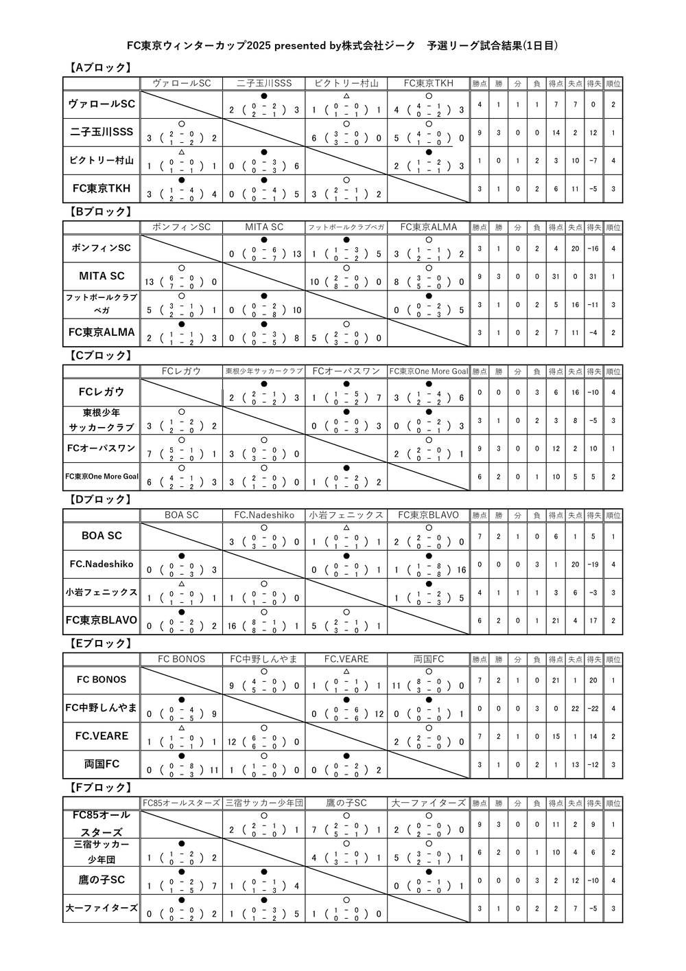 ~試合結果(1日目)~