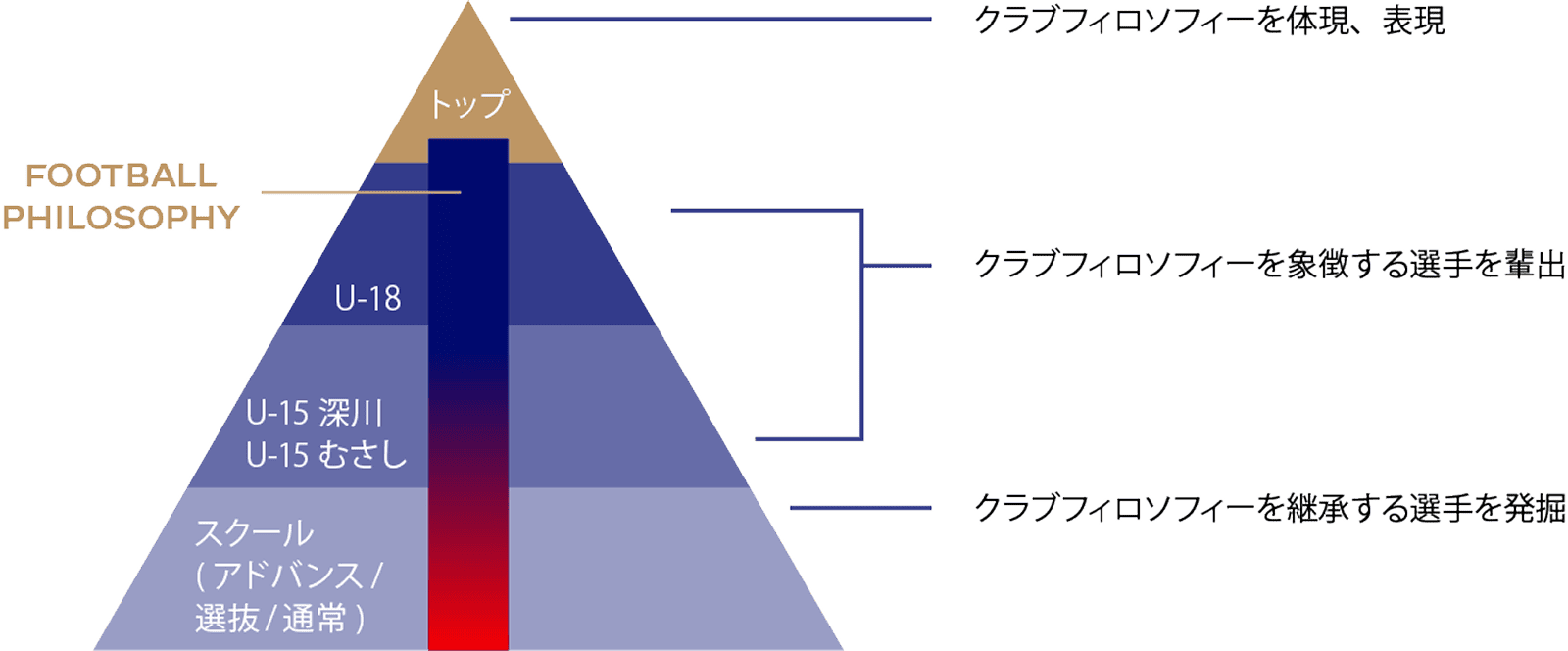 FC东京致力于培养能够在顶级球队中活跃,并且在社会上也能发挥作用的人才,提供系统化的培养体系和对球员个人的支持。